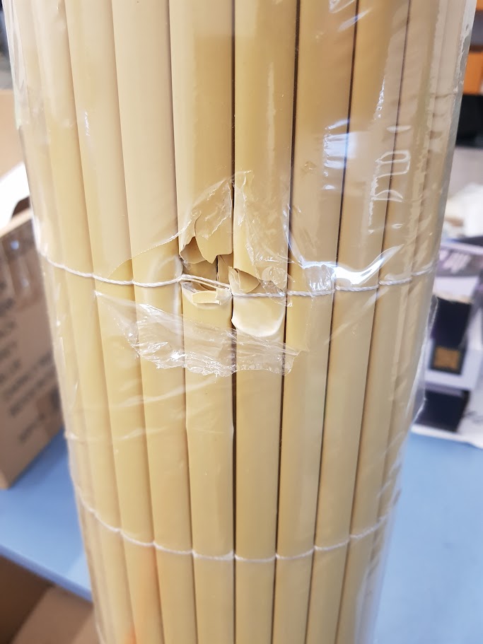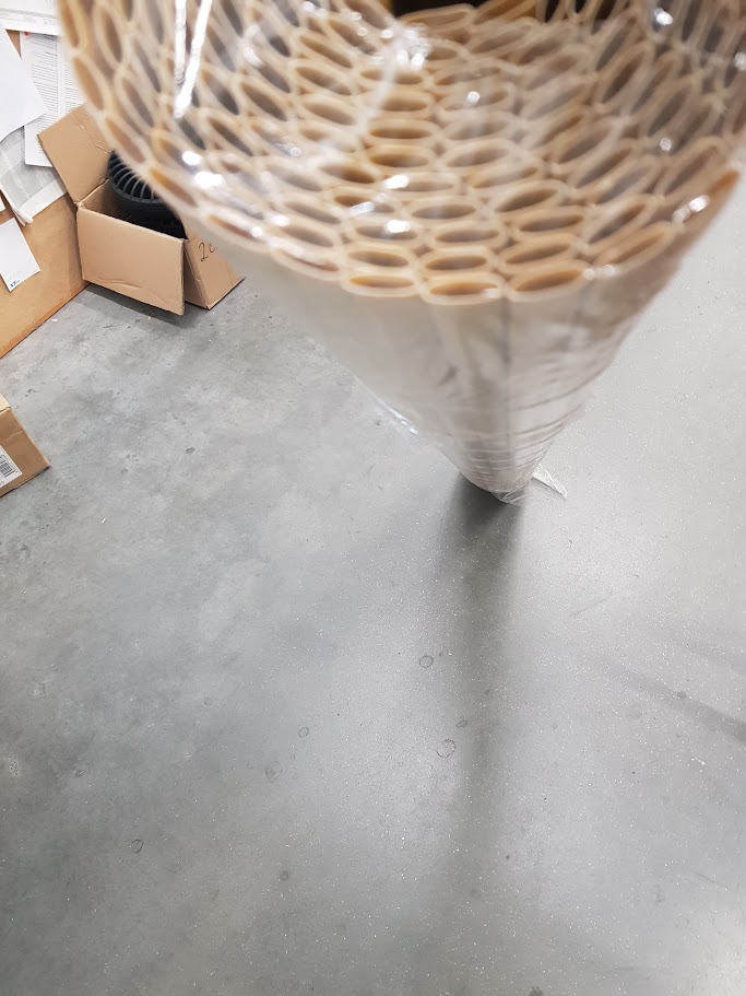 Produkt bol prepravou mierne znehodnotený, na začiatku sú dve lamely mierne poškodené (viď. foto). Cca 1,5x2,70m pletiva je nepoškodené.