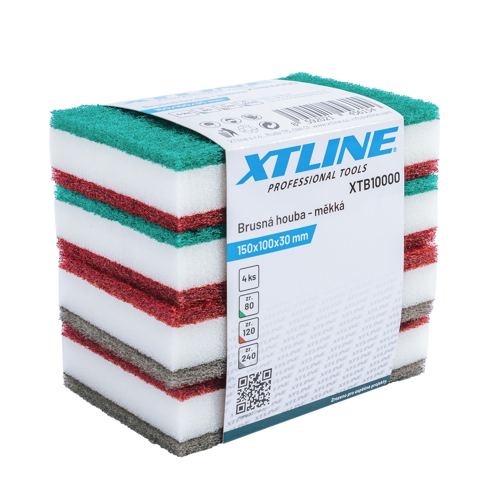Mäkká brúsna huba je vhodná na ručné brúsenie dreva, kovov i lakovaných povrchov. Flexibilné penové jadro sa prispôsobí tvaru materiálu a umožní rovnomerný úber. Súprava obsahuje štyri huby so zrnitosťou P80 (zelená) na hrubší úber, P120 (červená) na porovnanie povrchu a P240 (sivá) na jemné dokončovacie brúsenie.