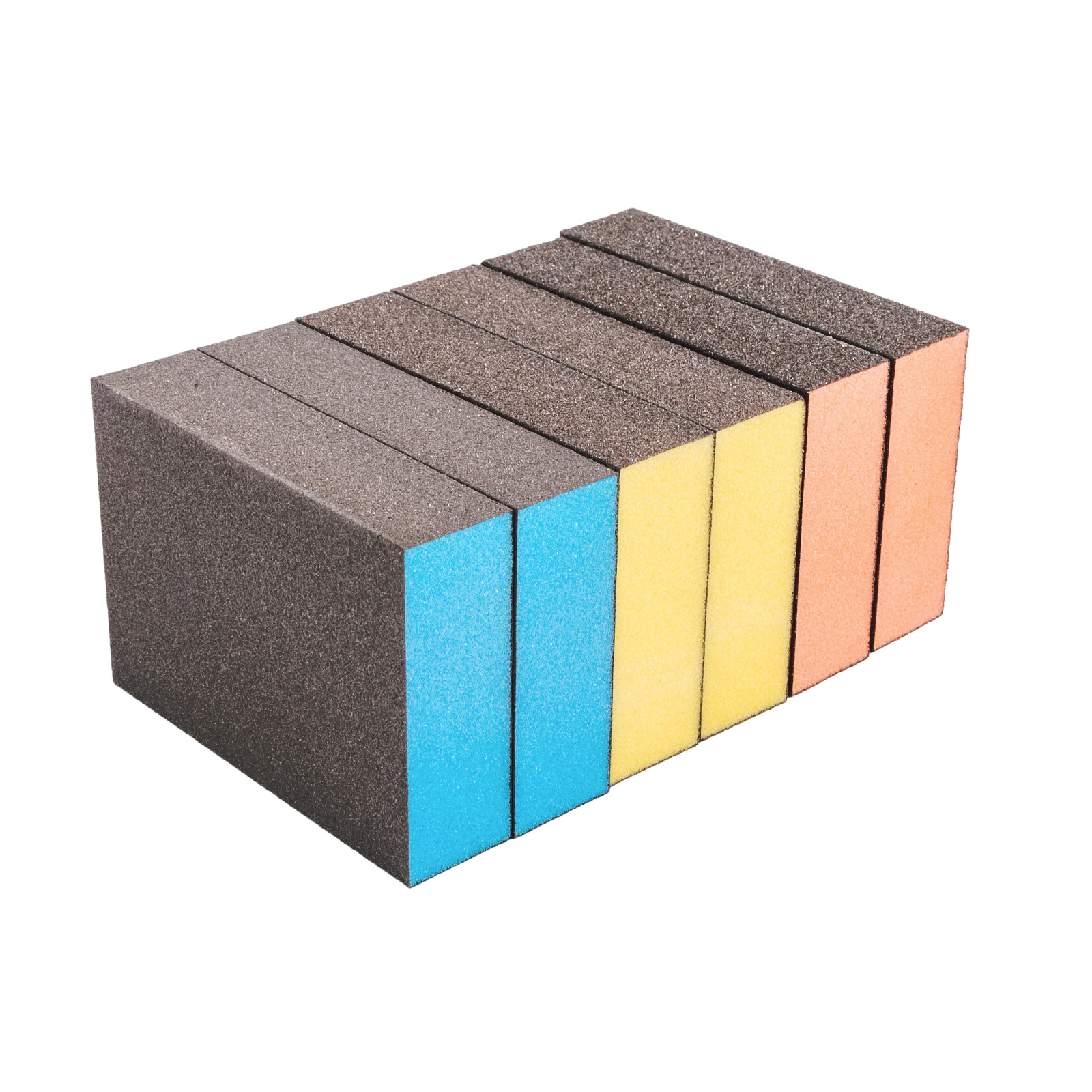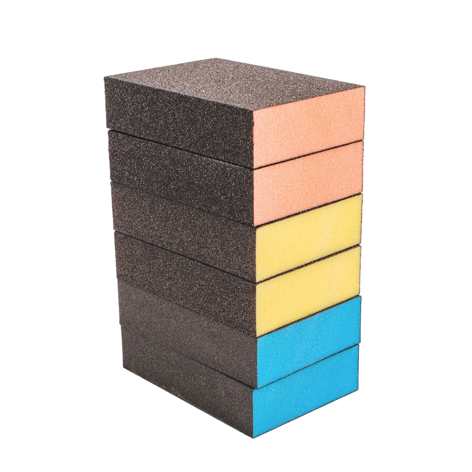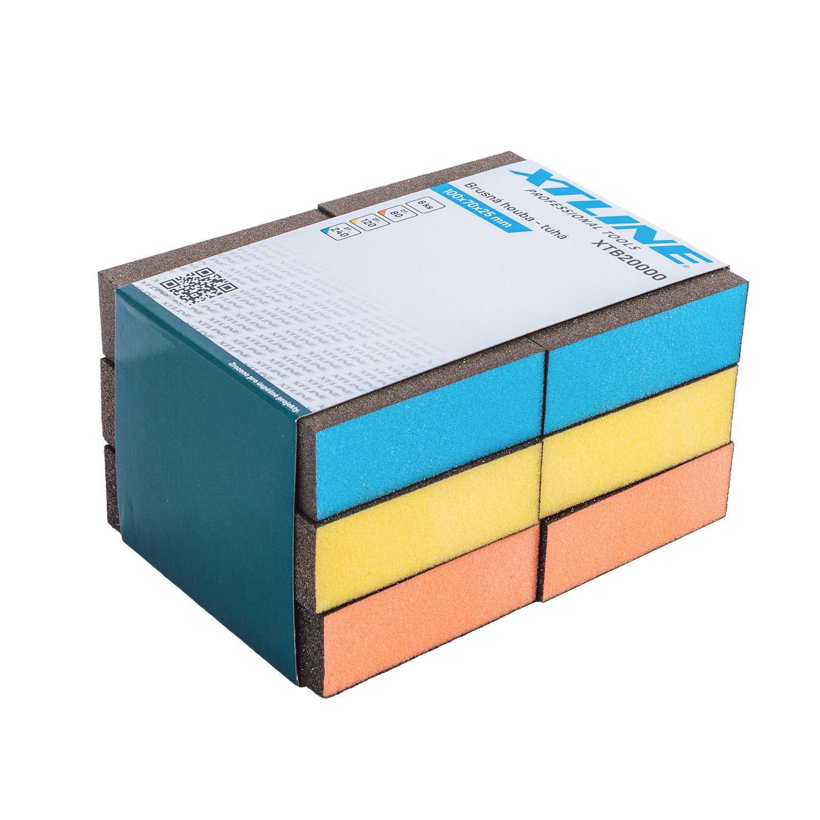 Tuhá brúsna huba je vhodná na presné ručné brúsenie dreva, kovov, plastov i tmelov, najmä pri príprave pred lakovaním. Vďaka pevnej konštrukcii dobre drží tvar a umožňuje rovnomerný úber aj na hranách. Balenie obsahuje 6 hubových blokov so zrnitosťou P80 na hrubé brúsenie, P120 na porovnanie povrchu a P240 na jemné dokončovacie práce.
