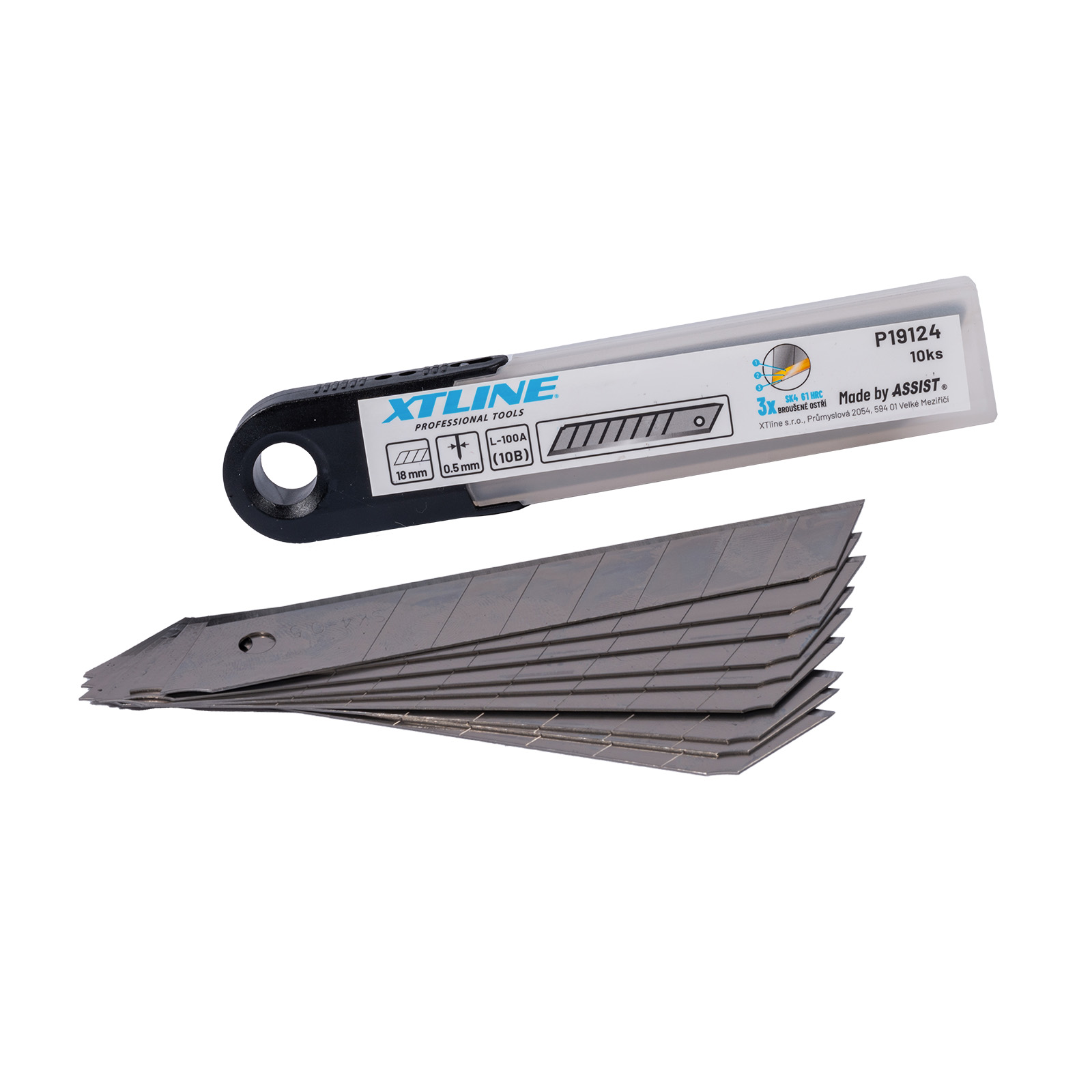 Náhradné čepele do ulamovacích nožov. Balenie 10ks v plastovej krabičke s okom na zavesenie. Technológia brúsenia čepieľok pod troma uhlami značne zvyšuje životnosť čepele.