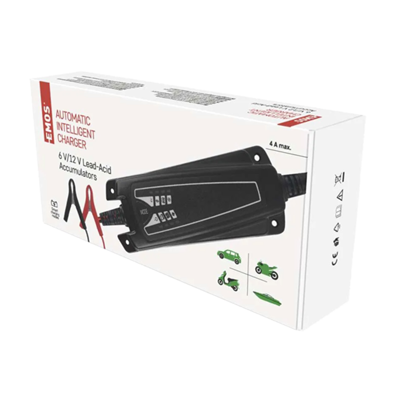 Inteligentná nabíjačka je určená pre automobily, motocykle, záložné akumulátory. Nabíja olovené aku WET (kyselinové), MF (bezúdržbové), záložné akumulátory VRLA, AGM, GEL aj EFB.
