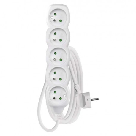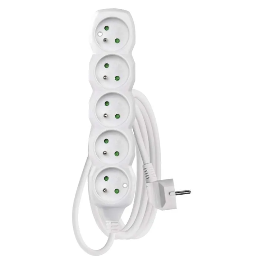 Predlžovací kábel je praktický pomocník do domácnosti. Je biele farby. Podľa počtu a prevedenia zásuviek môžete zapojiť viac spotrebičov do jednej zásuvky vzdialenej od elektrickej zástrčky.