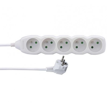 Predlžovací kábel je praktický pomocník do domácnosti. Je biele farby. Podľa počtu a prevedenia zásuviek môžete zapojiť viac spotrebičov do jednej zásuvky vzdialenej od elektrickej zástrčky.