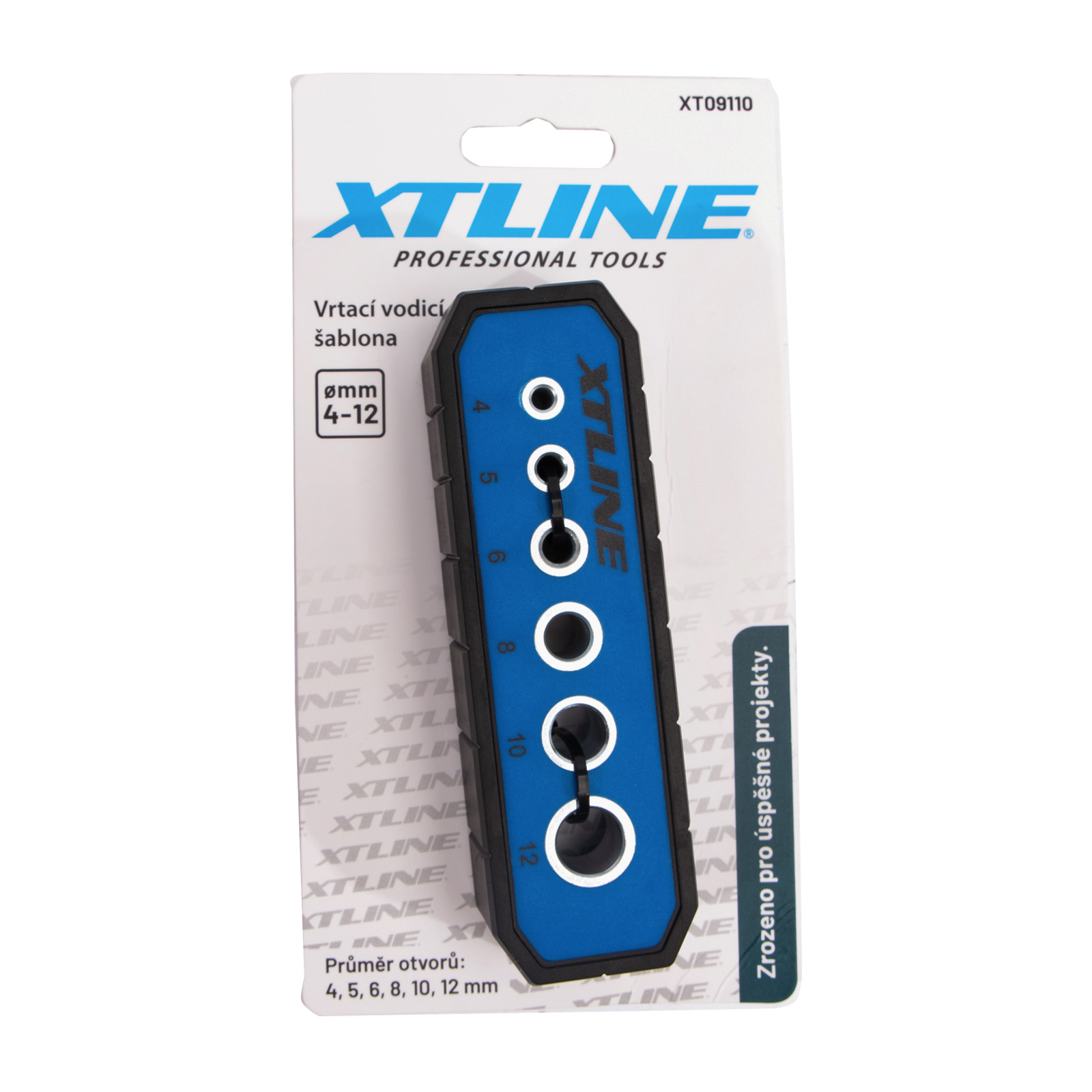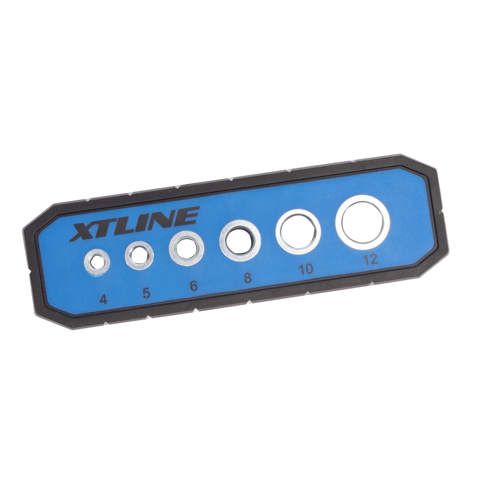 Praktický vodiaci prípravok na vŕtanie v rôznych priemeroch (4–12 mm). Pogumovaný povrch pre pevný úchop a priľnutie k obrobku. Bočné drážky označujú stredy predznačených vŕtacích otvorov a zaisťujú presnú prácu. Drážka v tvare písmena „V“ na spodnej strane prípravku zaisťuje pevné uchytenie k rohom a okrúhlym obrobkom.